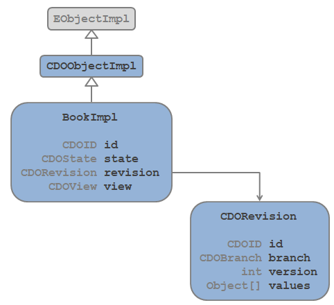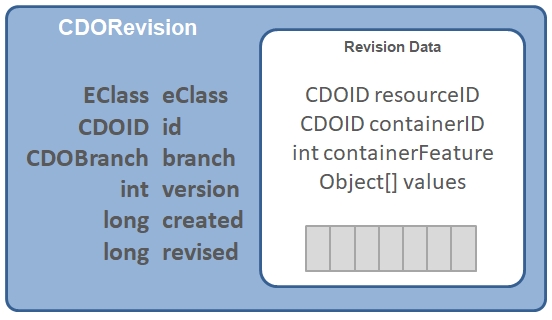 Note that CDOObjects and CDOViews are client-side concepts. On the server side, CDO uses only CDORevisions to represent model objects. CDORevisions are also used as the unit of storage and retrieval in the CDO repository, as well as the unit of data transfer between clients and the server.