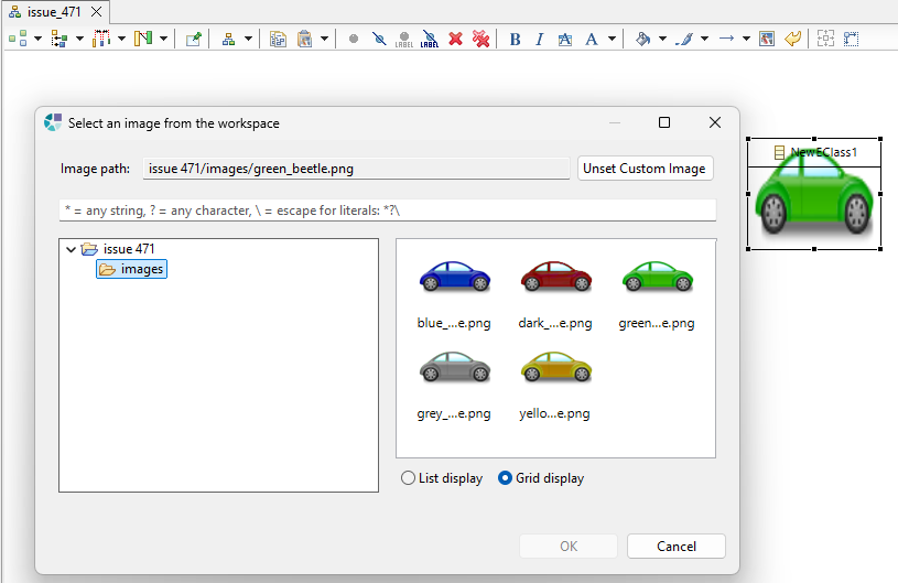 ImageSelectionDialog, a new feature has been added to reset the WorkspaceImage assigned to a DDiagramElement. Before this improvement, it was necessary to use the “Reset style properties to default values” button, but this also affected all other style modifications. This new button in the dialog resets only the WorkspaceImage style to the style of the element as defined in the Viewpoint Specification Model.